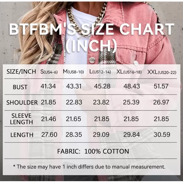 BTFBM 2023 Women’s Button Down Denim Jackets Long Sleeve Lapel Casual Fall Shirts Shackets Plaid Jacket With Pockets(Plaid Pink)
