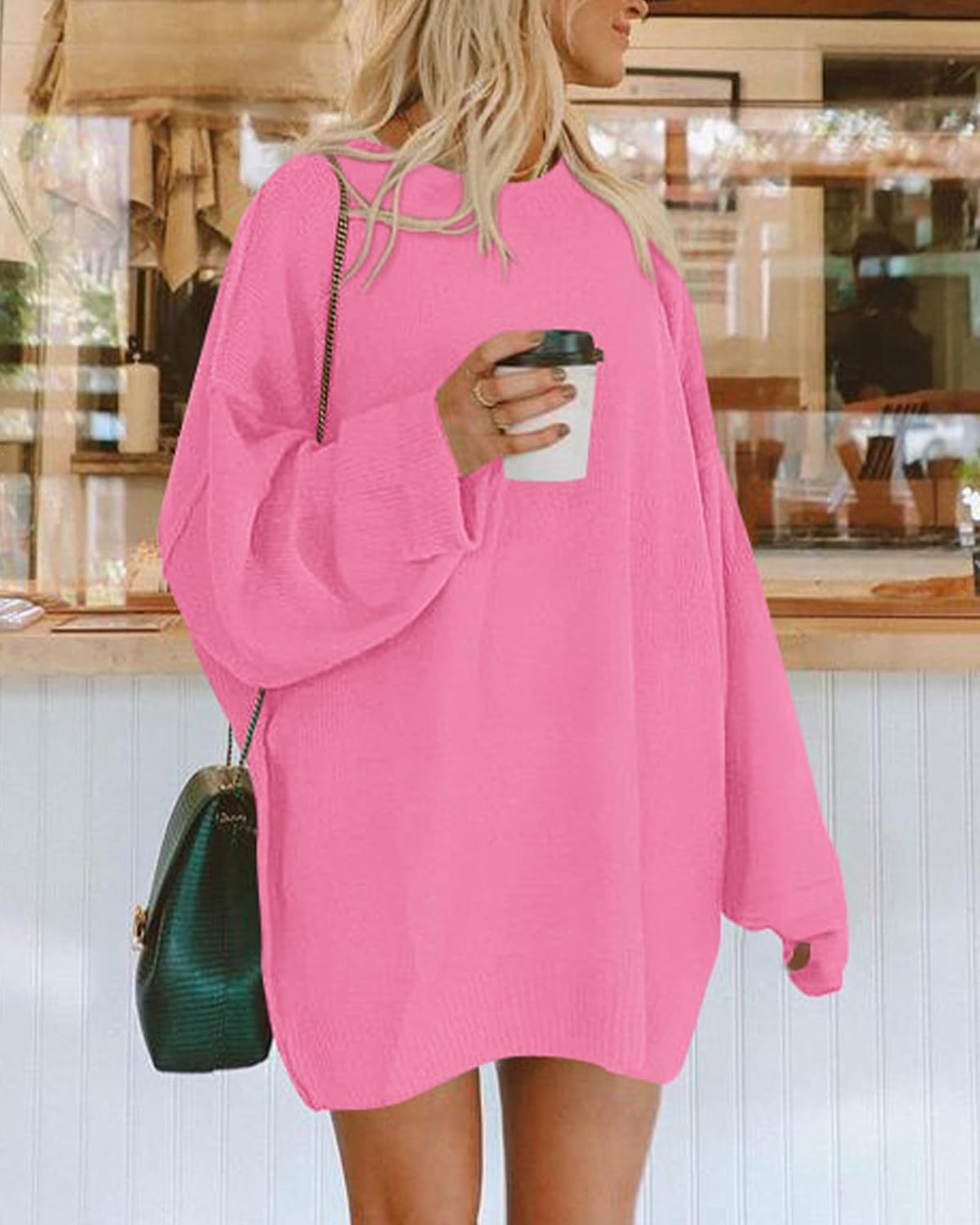 BTFBM 2023 Womens Sweaters Casual Crewneck Long Sleeve Oversized Sweater Dress Fall Winter Loose Slouchy Soft Pullover(Solid Rose Pink)