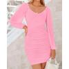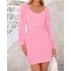 BTFBM 2025 Womens Summer Spring Bodycon Dress Cross V Neck Ruched Mesh Long Sleeve Party Short Formal Cocktail Dresses(Solid Pink)