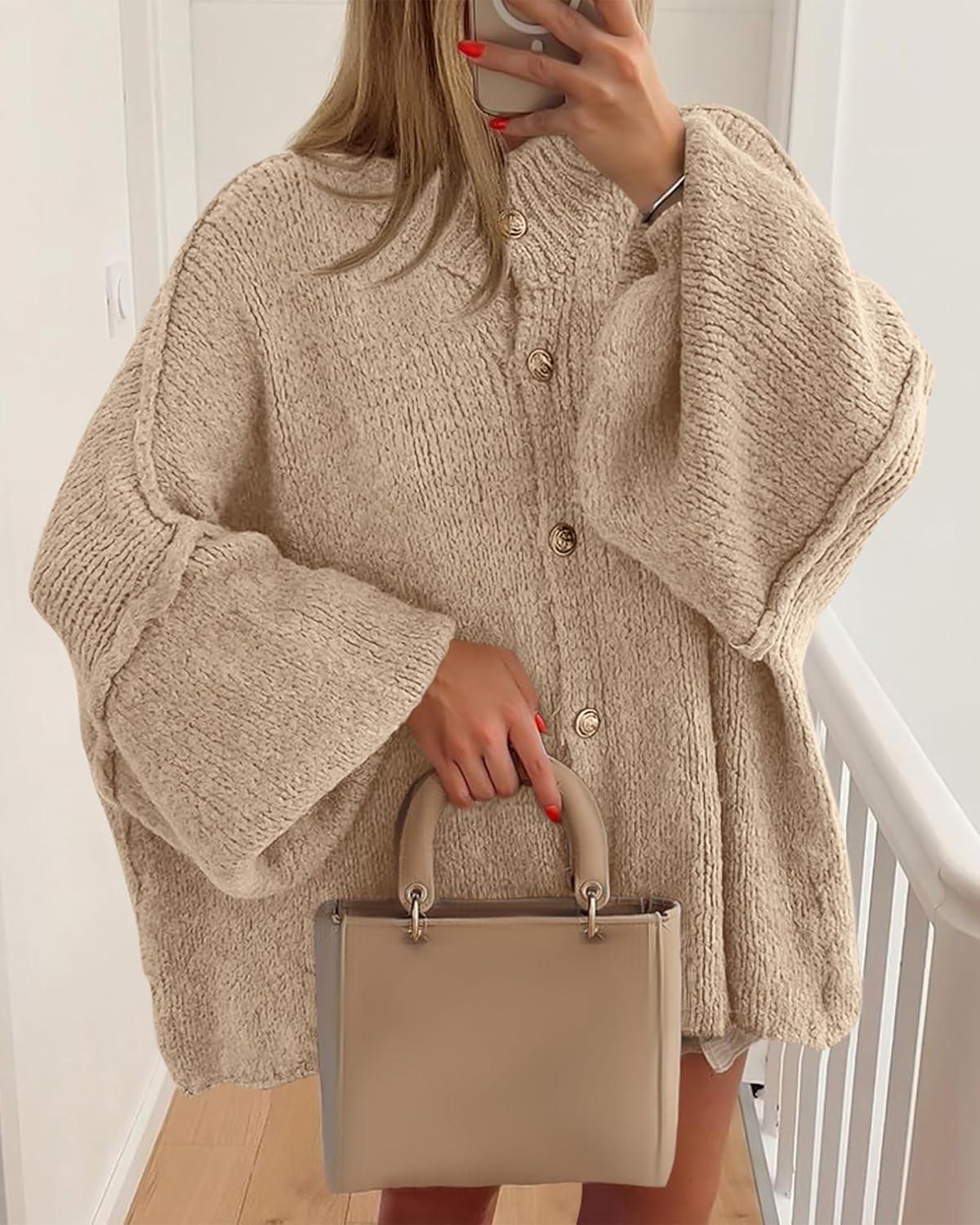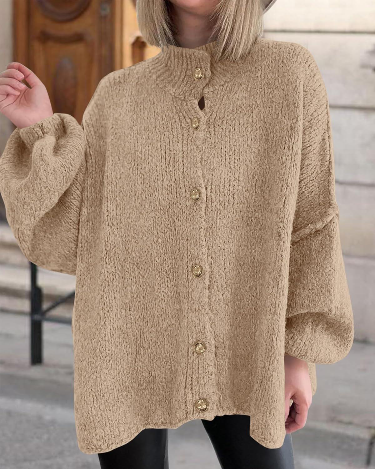 BTFBM Cardigan Sweaters for Women 2025 Fall Clothes Lantern Long Sleeve Button Open Front Chunky Knit Oversized Sweater(Apricot)
