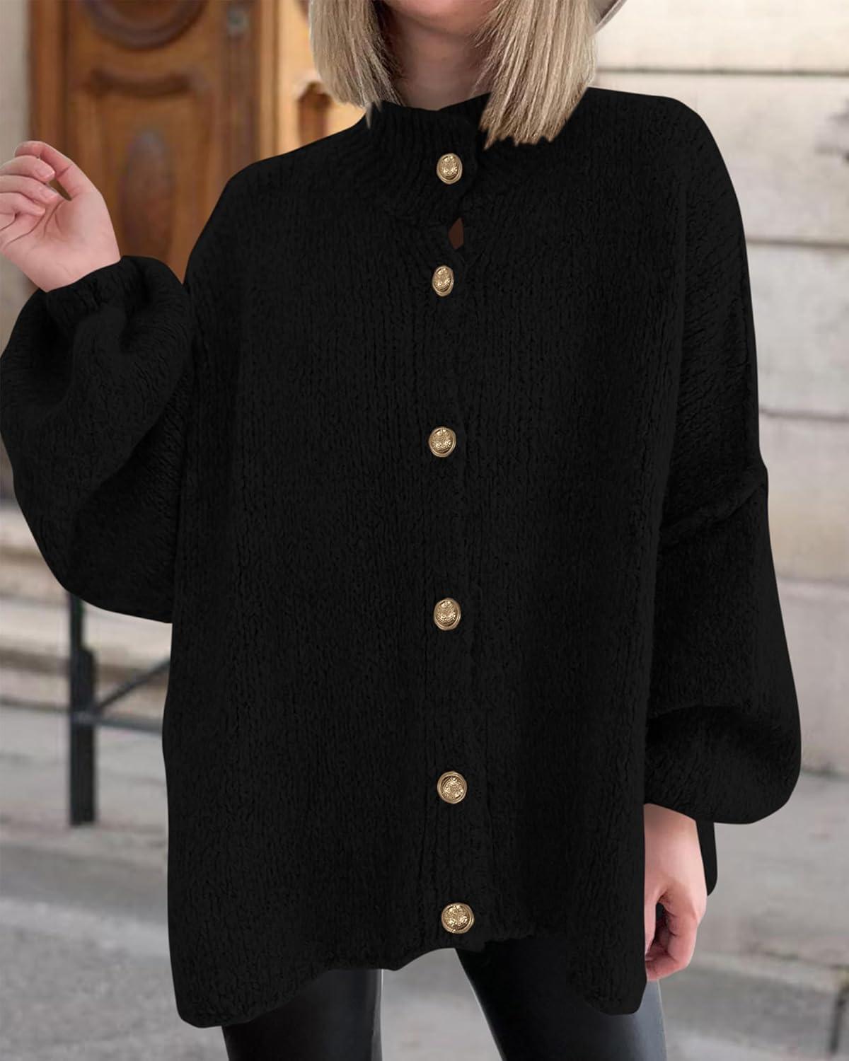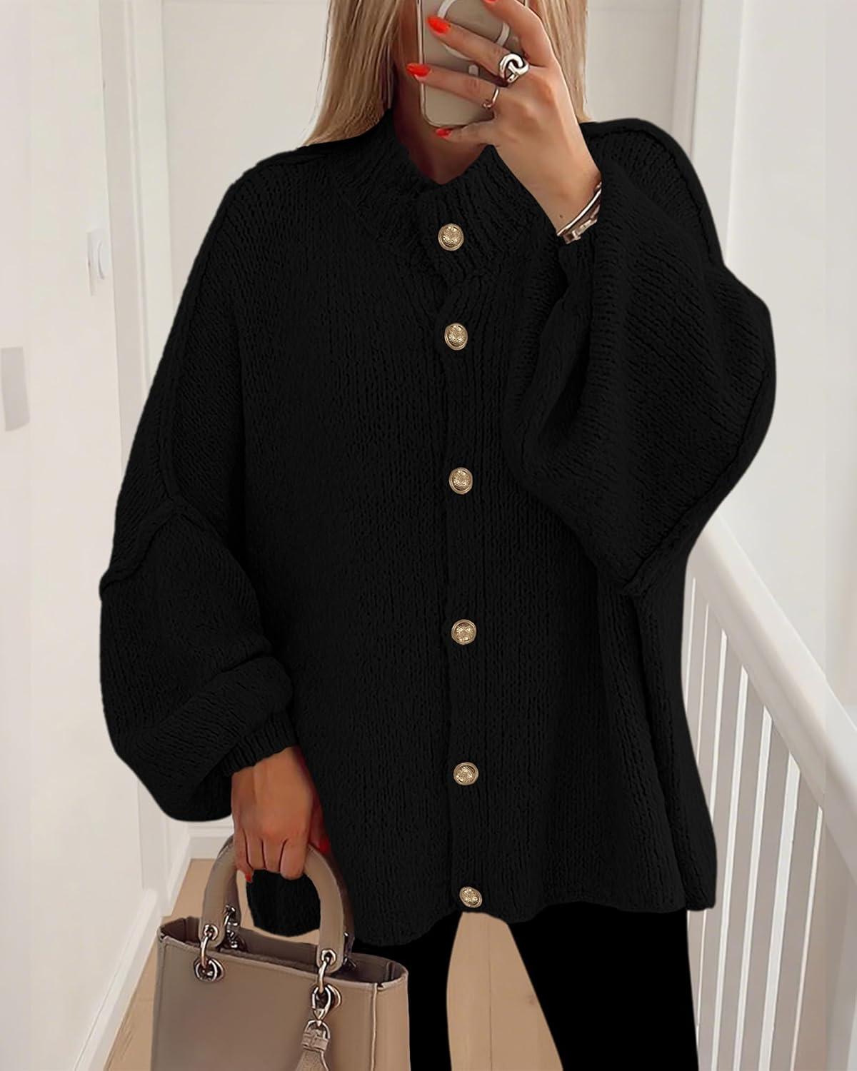 BTFBM Cardigan Sweaters for Women 2025 Fall Clothes Lantern Long Sleeve Button Open Front Chunky Knit Oversized Sweater(Black)