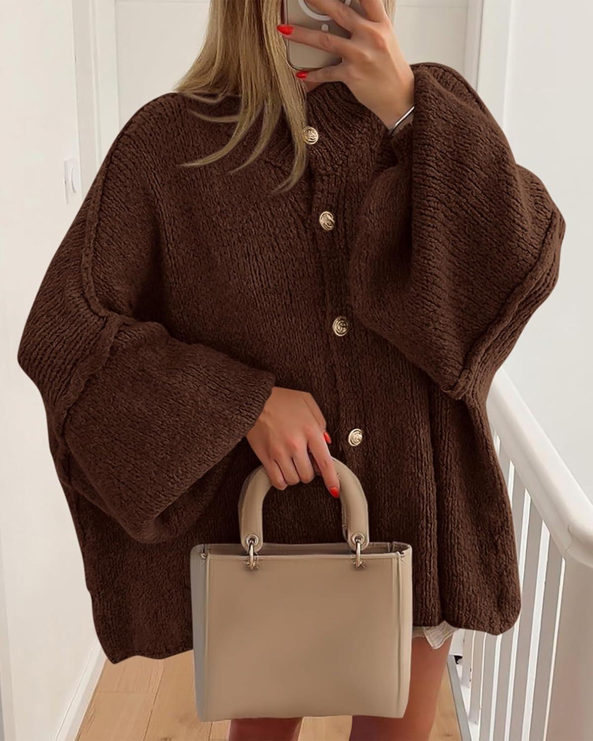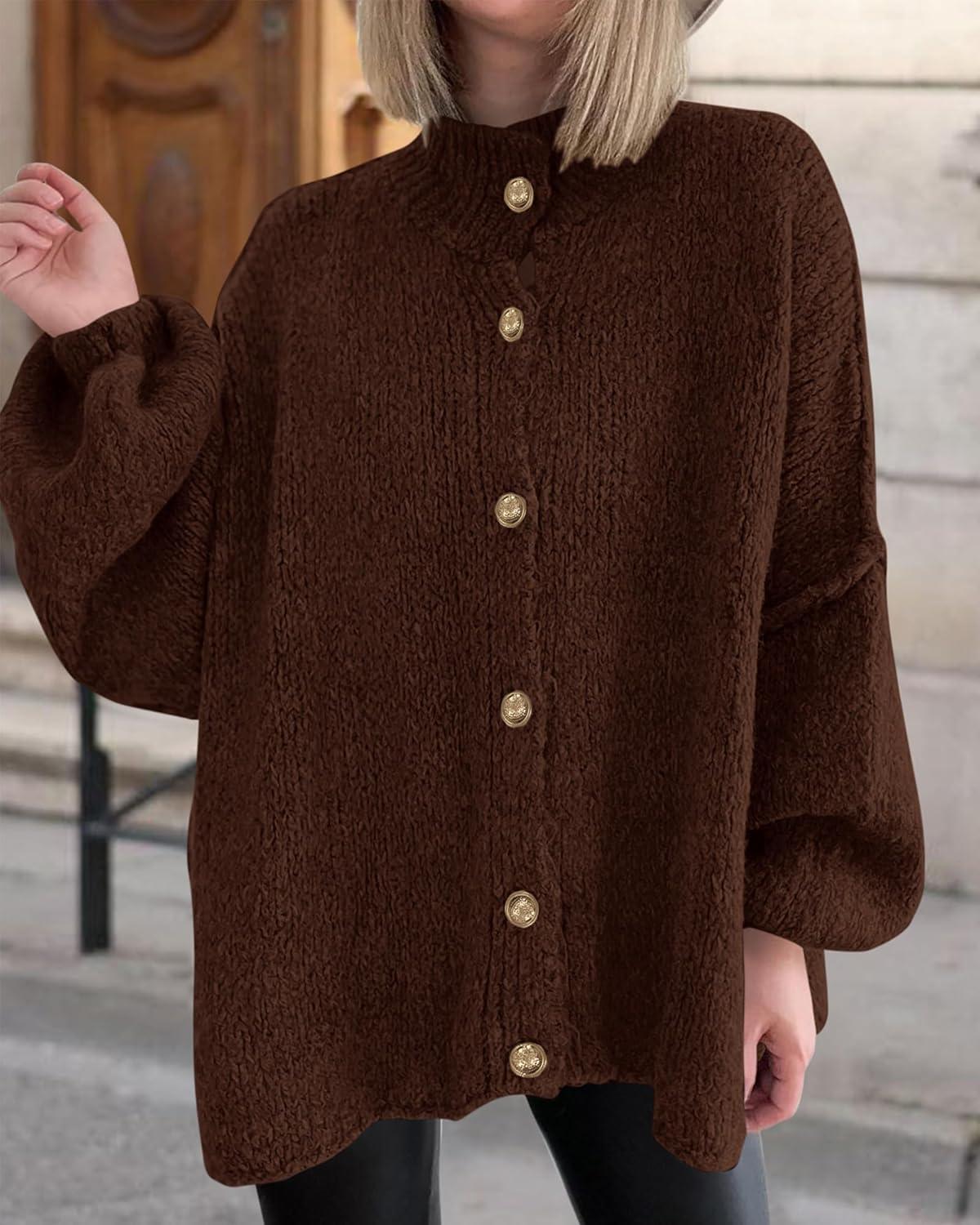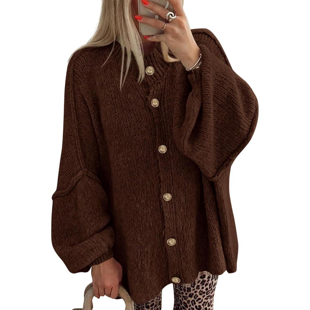 BTFBM Cardigan Sweaters for Women 2025 Fall Clothes Lantern Long Sleeve Button Open Front Chunky Knit Oversized Sweater(Brown)
