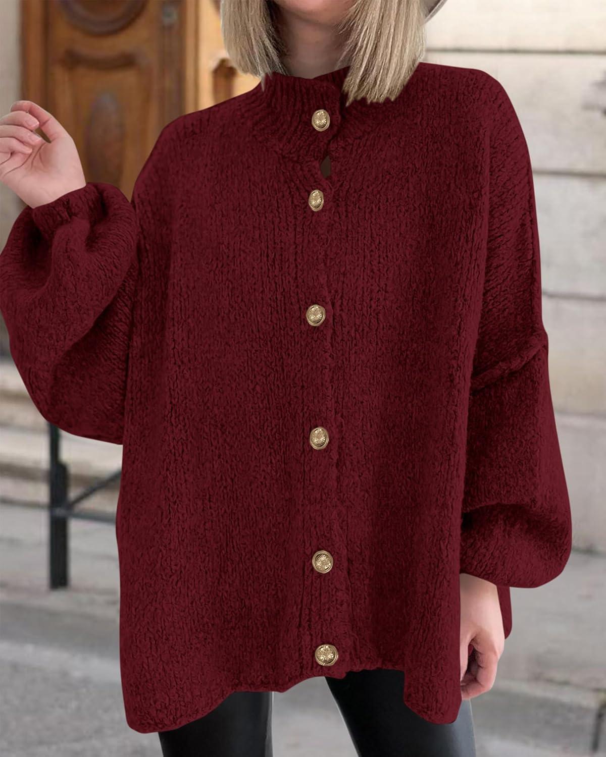 BTFBM Cardigan Sweaters for Women 2025 Fall Clothes Lantern Long Sleeve Button Open Front Chunky Knit Oversized Sweater(Burgundy)