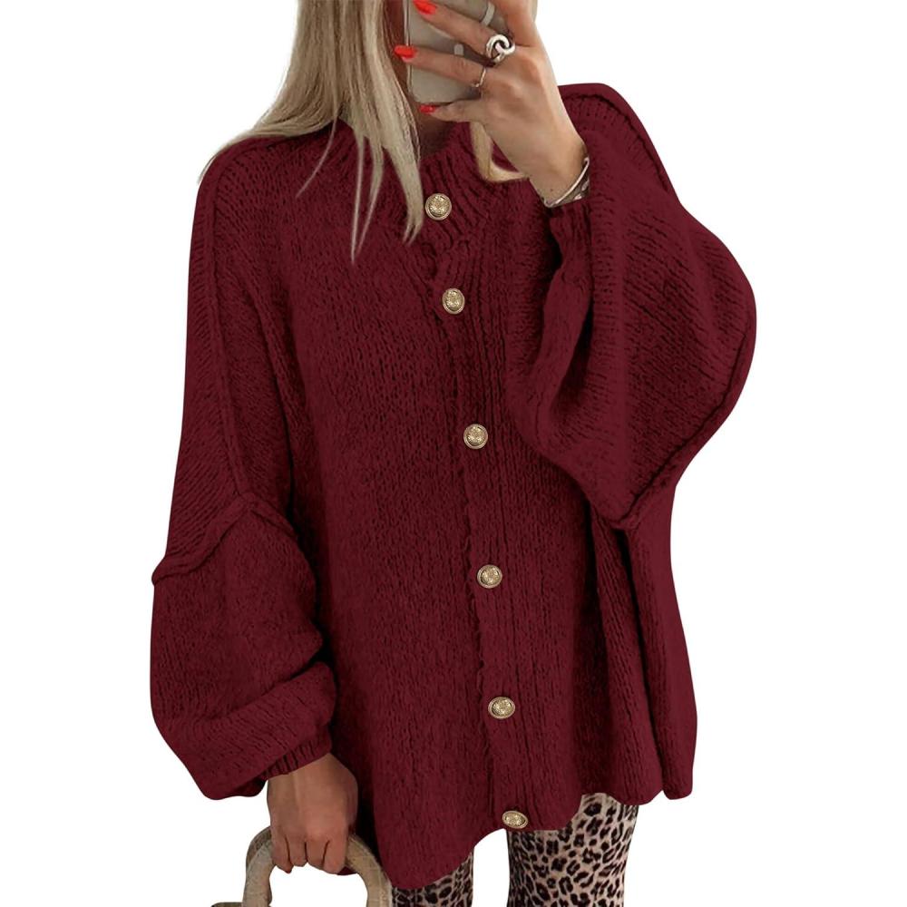 imageBTFBM Cardigan Sweaters for Women 2025 Fall Clothes Lantern Long Sleeve Button Open Front Chunky Knit Oversized SweaterBurgundy