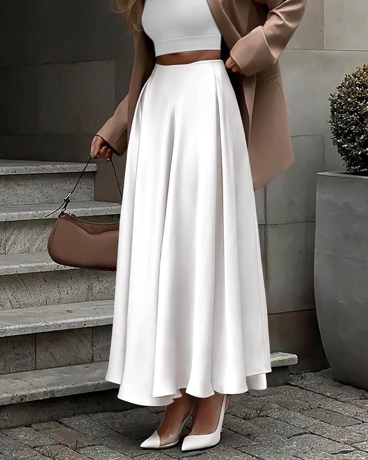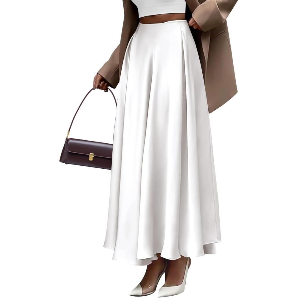 BTFBM High Waisted Skirts for Women Fall Clothes 2025 Elegant Satin Flowy A-Line Cocktail Formal Night Out Maxi Skirt(White)