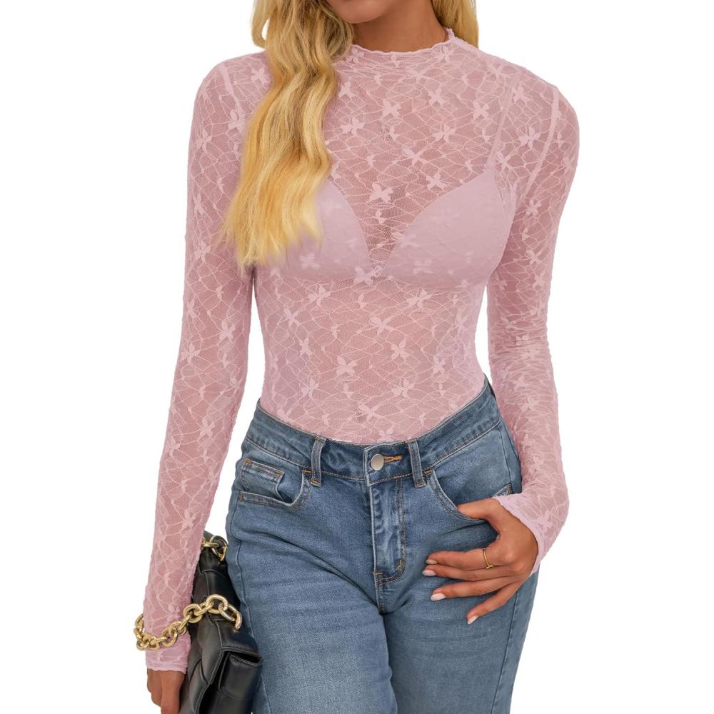 Be the first to review “BTFBM Lace Tops for Women 2025 See Through Mesh Top Crew Neck Long Sleeve Fitted Sheer Party Club Outfits Fall Fashion(Pink)”