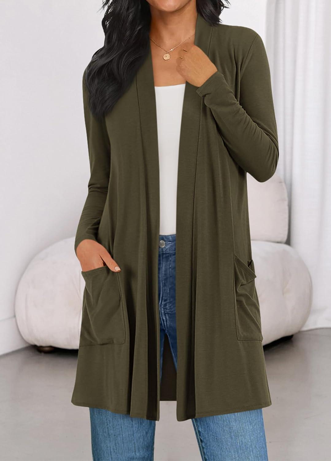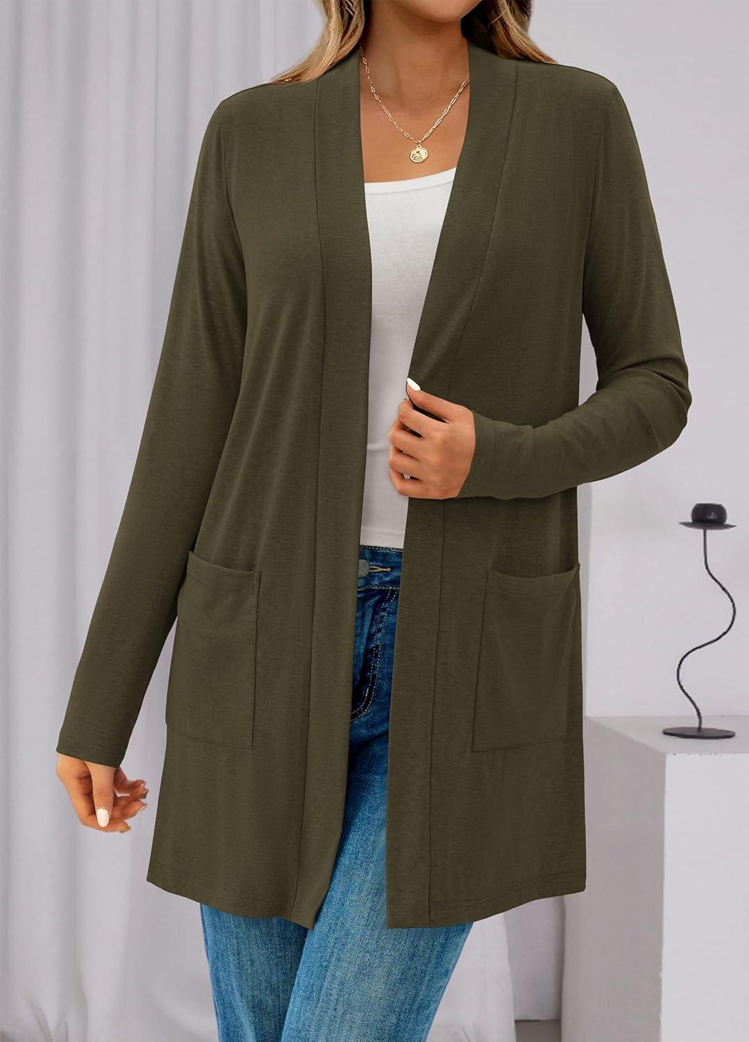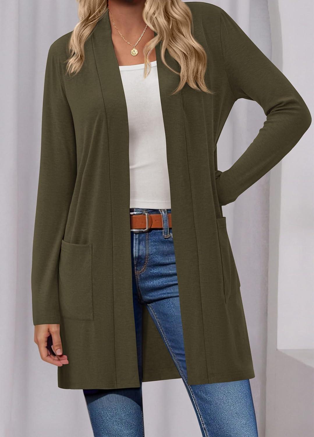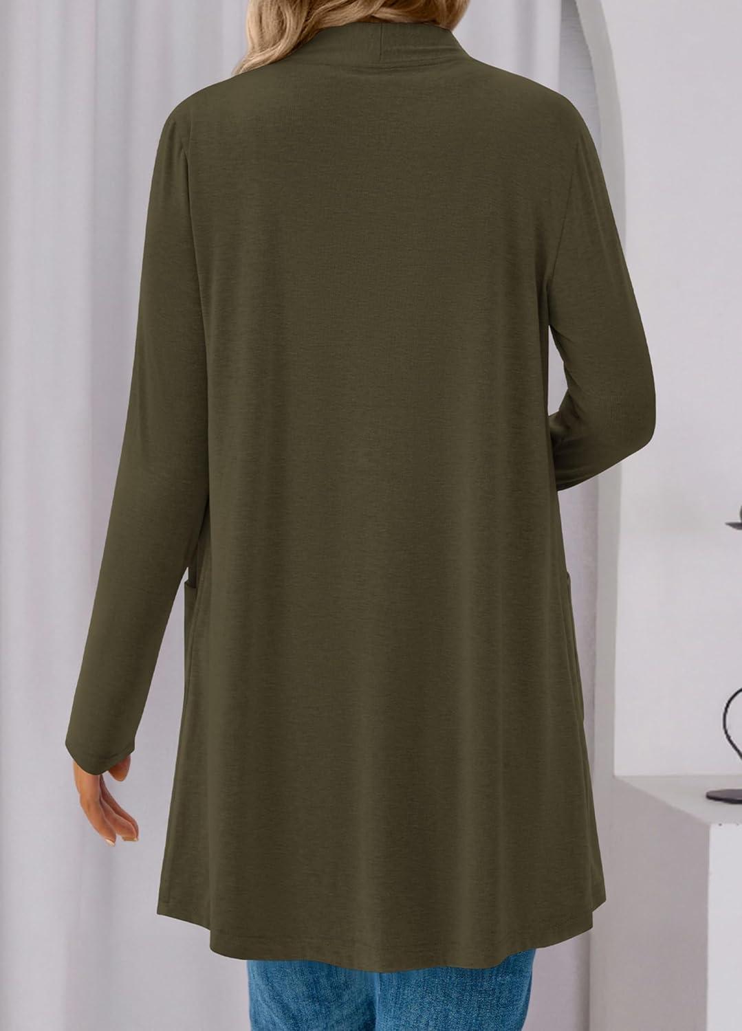 BTFBM Long Cardigans for Women Summer Fall Clothes 2025 Lightweight Casual Open Front Shawl Cardigan Pockets(Army Green)