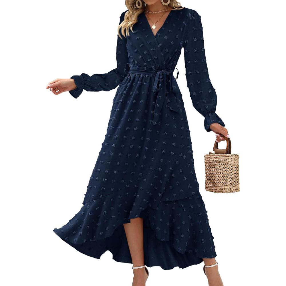 Be the first to review “BTFBM Long Sleeve Maxi Dresses for Women V Neck Swiss Dot Boho Flowy Slit Cocktail Wedding Guest Dress Fall Clothes 2025(Navy)”