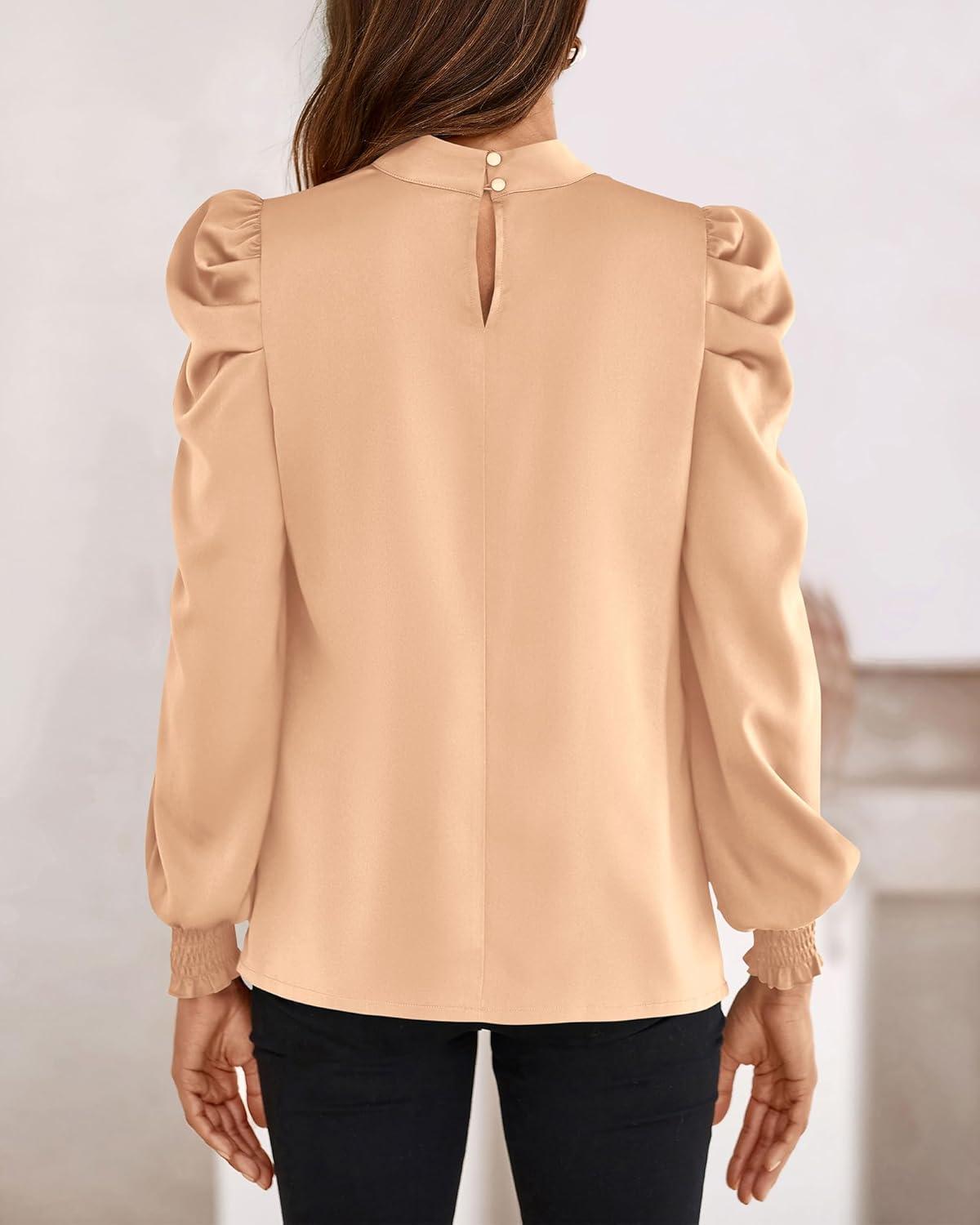 BTFBM Mock Neck Long Sleeve Blouses for Women Dressy Casual Business Work Shirts 2025 Spring Fall Clothes Satin Tops(Apricot)