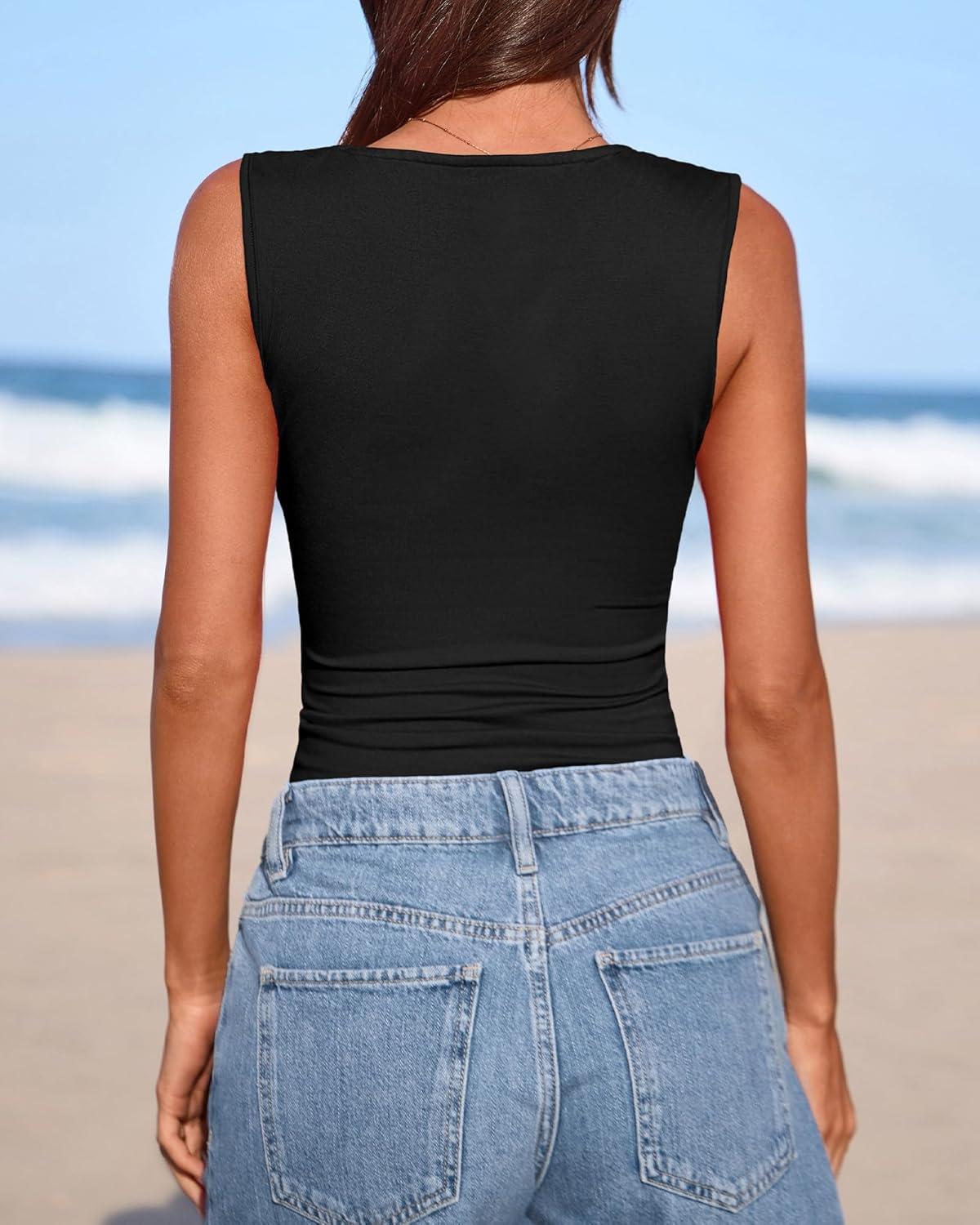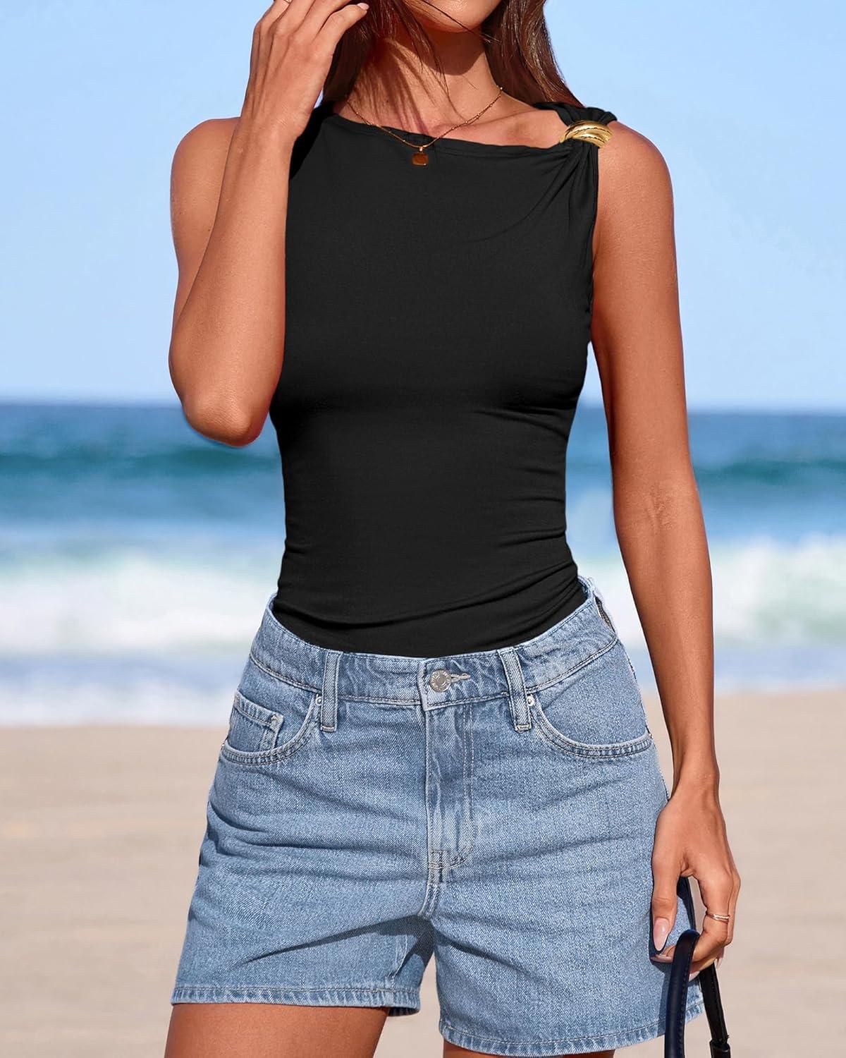 BTFBM Spring Tops for Women 2026 Asymmetrical Neck Sleeveless Going Out Summer Outfits Casual Ruched Y2k Tank Top Clothes(Black)
