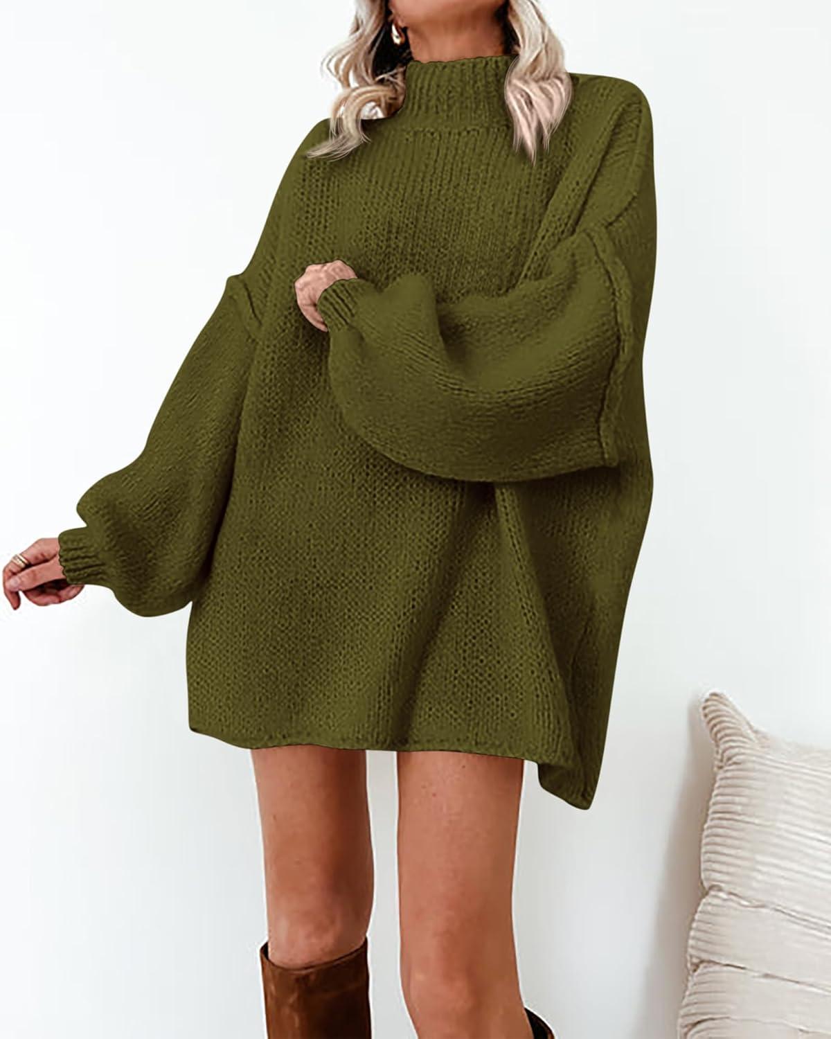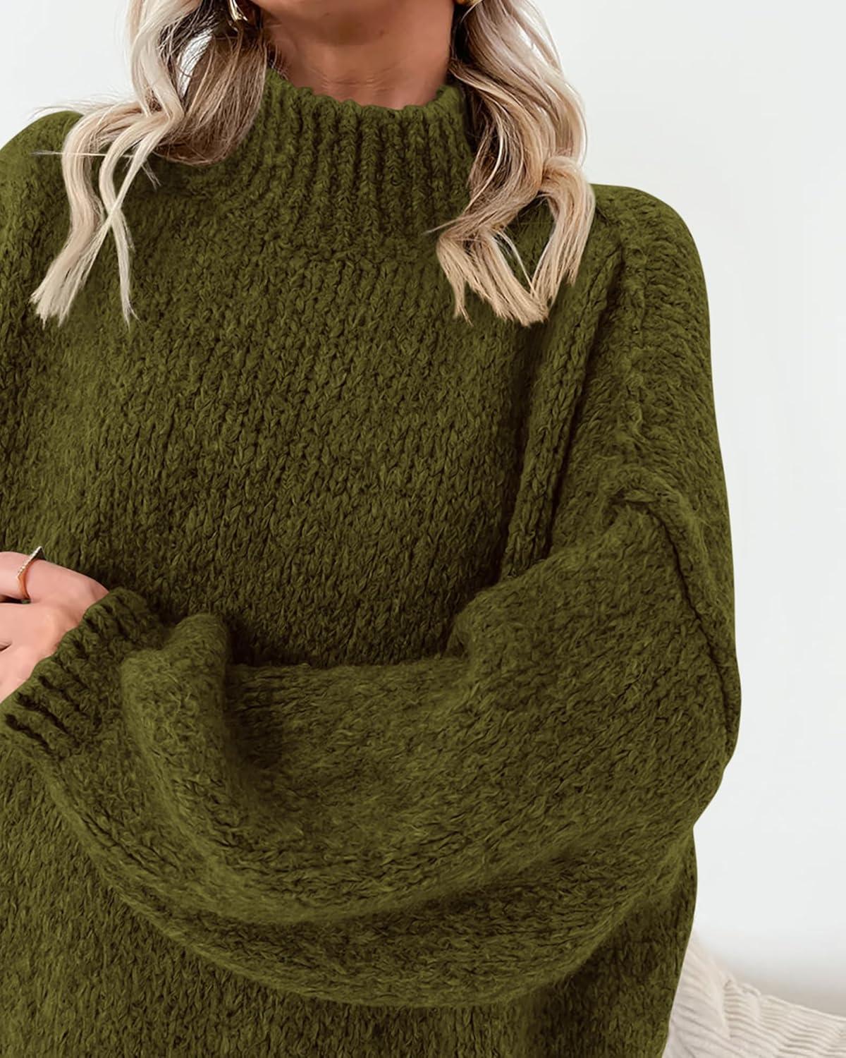 BTFBM Sweaters for Women Fall 2025 Long Sleeve Mock Neck Cable Knit Oversized Sweater Pullover Tops Thick Winter Clothes(Army Green)