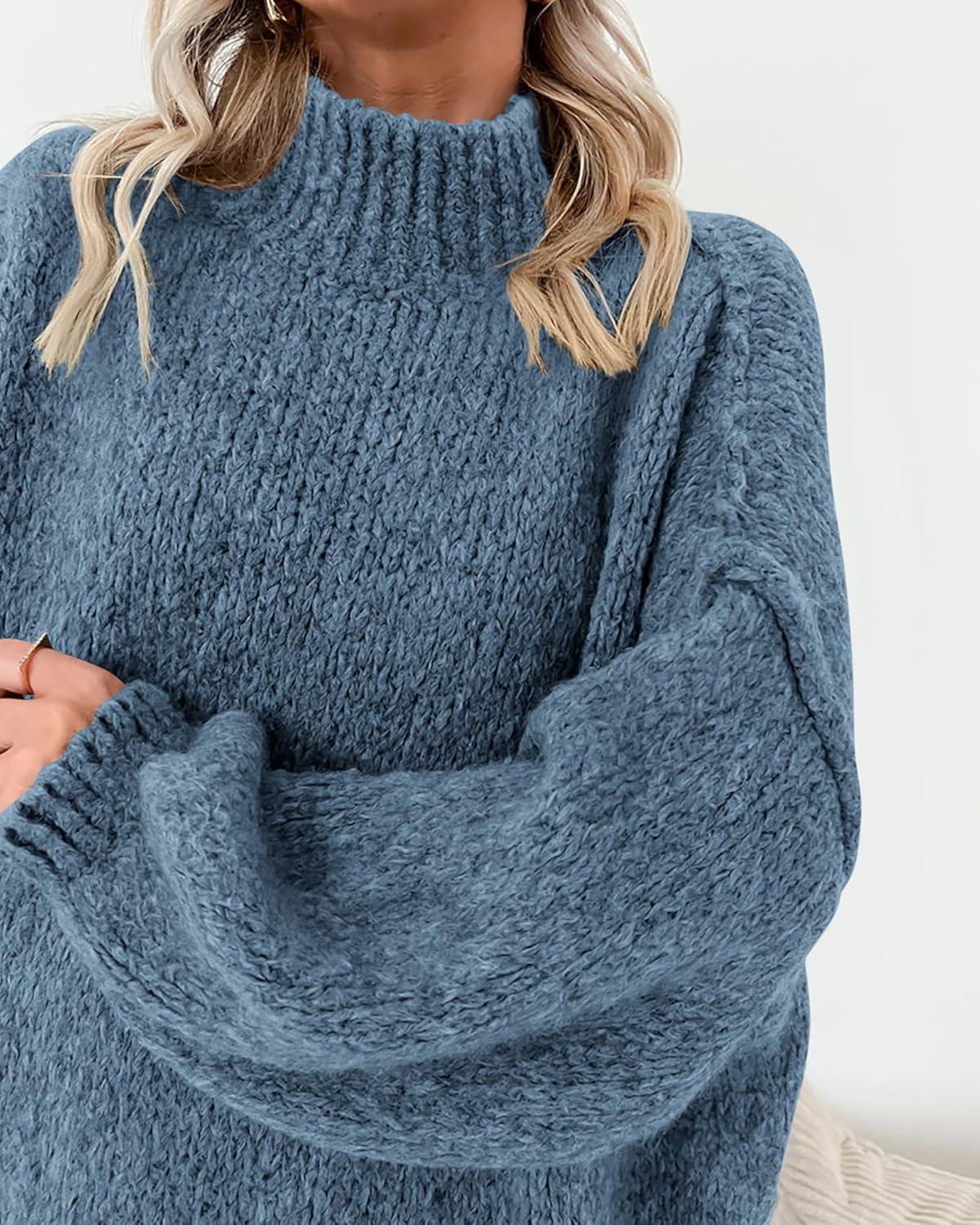 BTFBM Sweaters for Women Fall 2025 Long Sleeve Mock Neck Cable Knit Oversized Sweater Pullover Tops Thick Winter Clothes(Grey Blue)