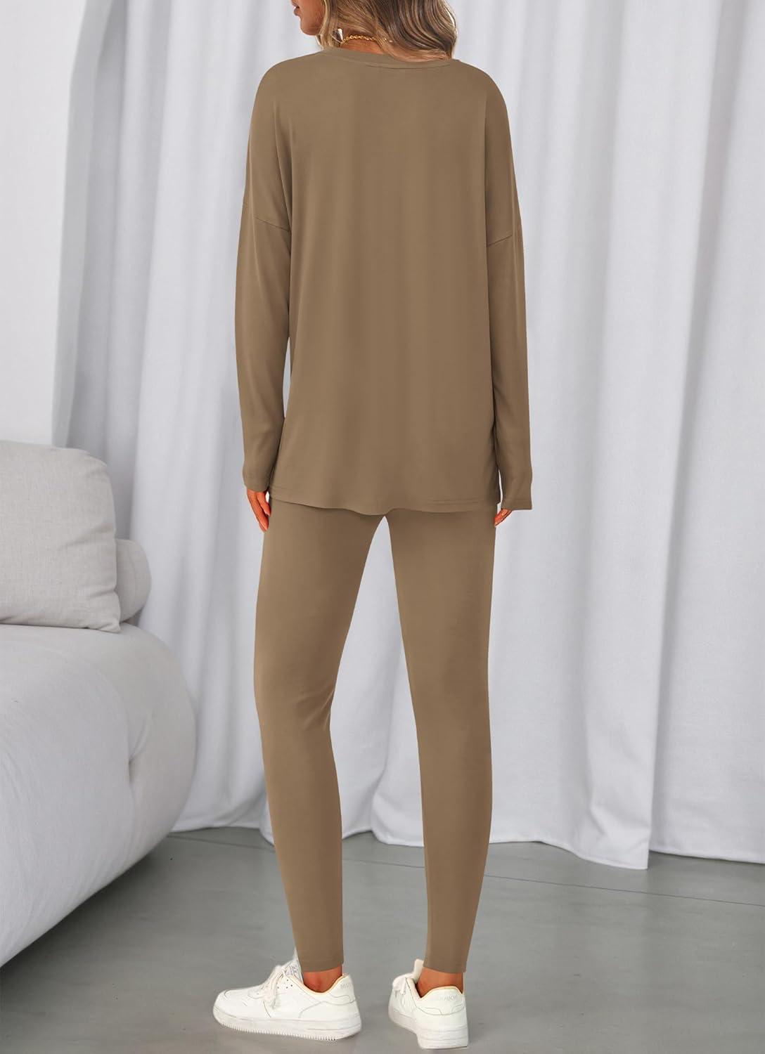 imageBTFBM Two Piece Sets For Women Fall Fashion 2025 Casual Lounge Matching Set Airport Travel Outfit Workout ClothingDark Khaki