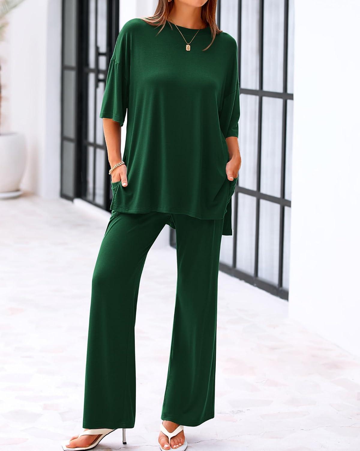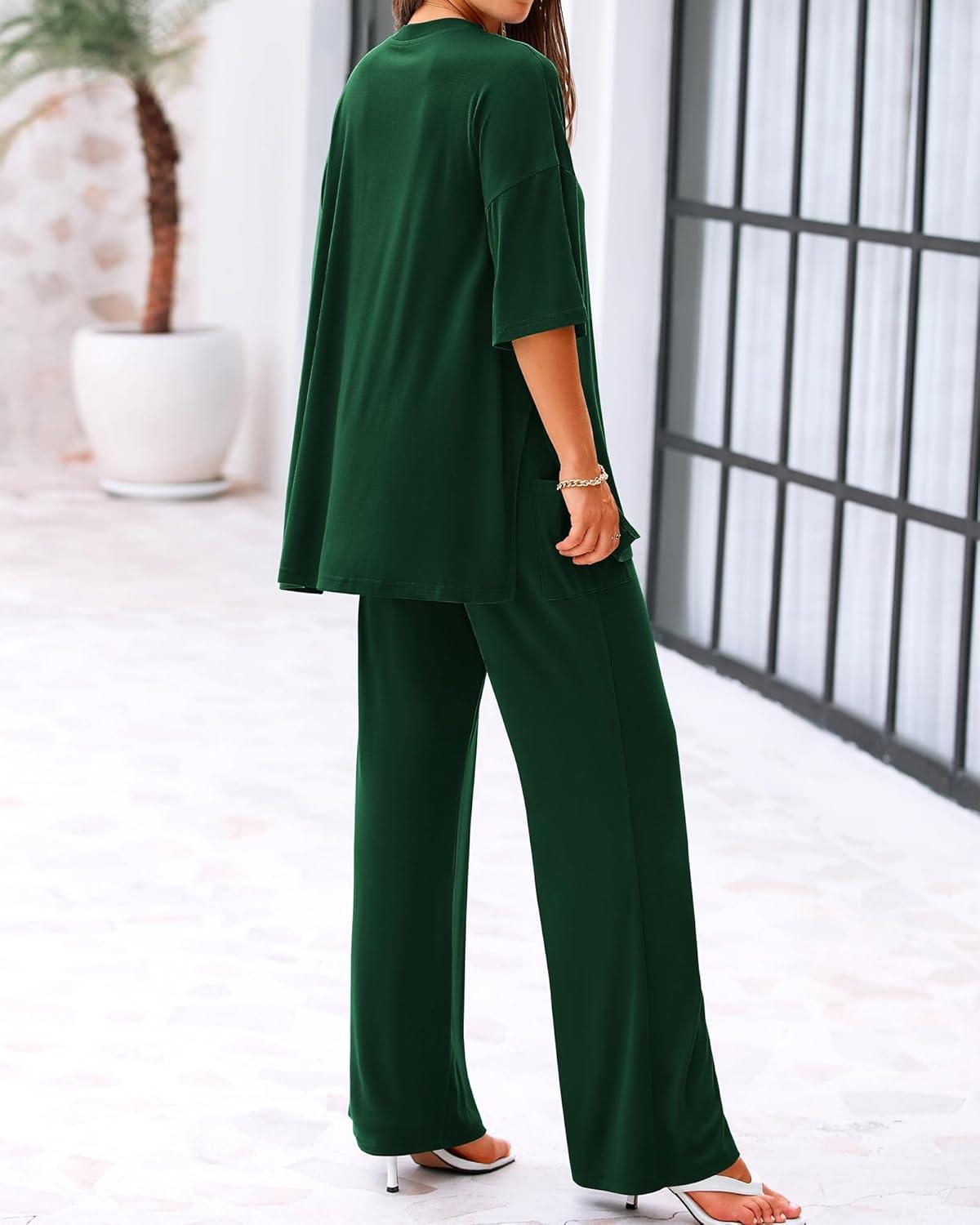 Don’t wait, get up to 50% off on BTFBM Women 2 Piece Outfits Casual Loose Slit Short Sleeve Top Wide Leg Pants Matching Lounge Sets Tracksuit With Pocket(Dark Green) during our end-of-season sale event.