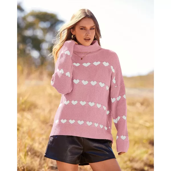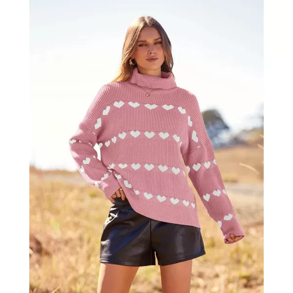 BTFBM Women 2023 Casual Turtleneck Sweaters Heart Print Oversized Long Sleeve Knit Fall Winter Jumper Pullovers(Heart Light Pink White)