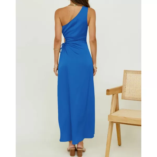 BTFBM Women 2023 One Shoulder Prom Dresses Sleeveless Cutout Ruched Adjustable Split Satin Party Cocktail Maxi Dress(Solid Blue)