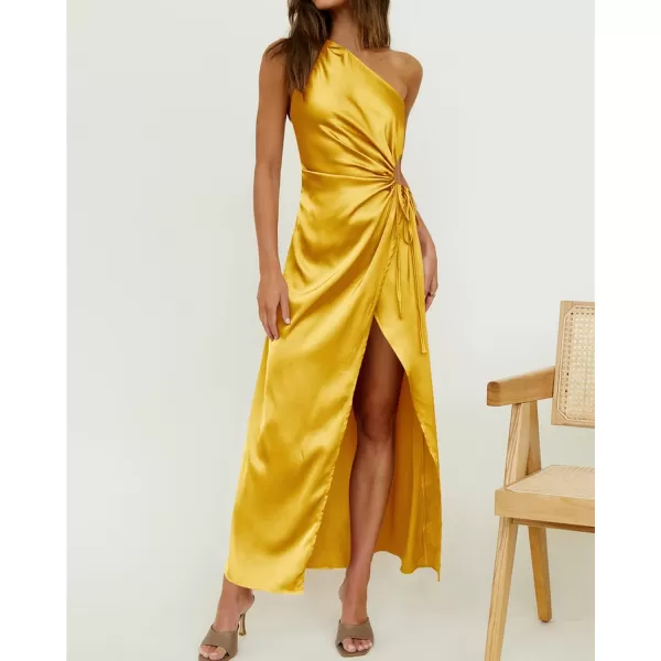 BTFBM Women 2023 One Shoulder Prom Dresses Sleeveless Cutout Ruched Adjustable Split Satin Party Cocktail Maxi Dress(Solid Yellow)