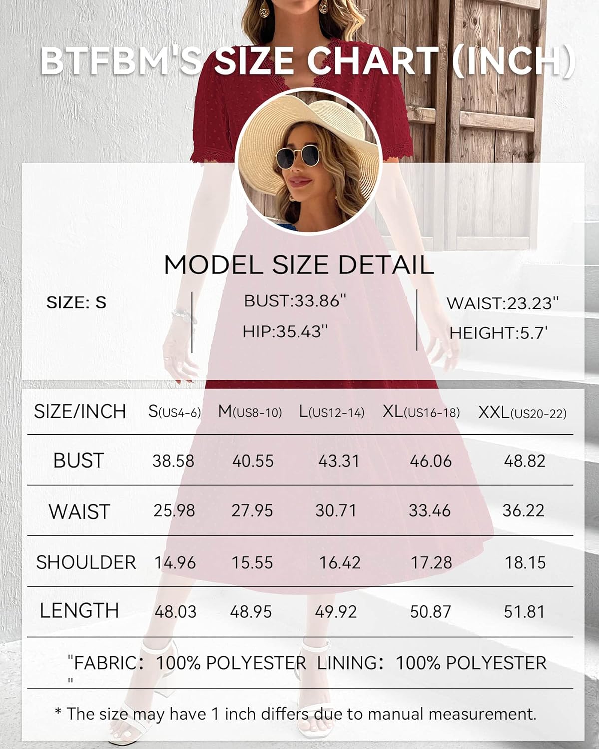 Don’t miss out on our limited-time offer: buy BTFBM Women 2023 Summer Boho Midi Dress Short Sleeve V Neck Swiss Dot Belted High Waist Ruffle Tiered A-Line Beach Dress, get {accessory} free!