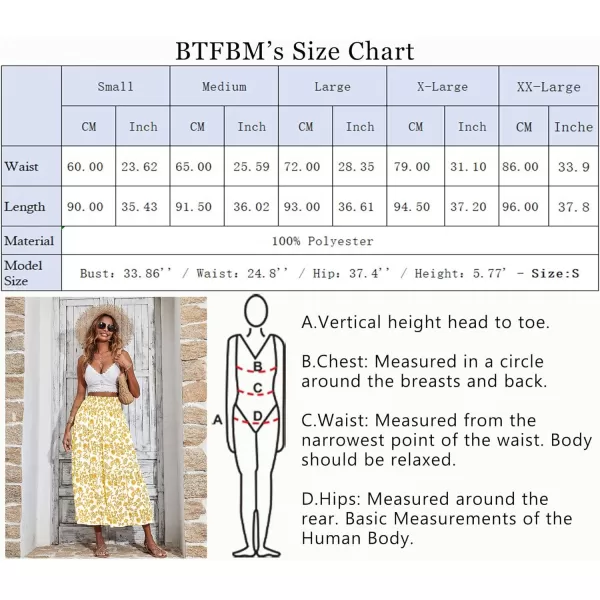 imageBTFBM Women 2023 Summer Fall Floral Long Skirts Casual Elastic High Waist Pleated Swing A Line Boho Beach Maxi SkirtFloral Yellow