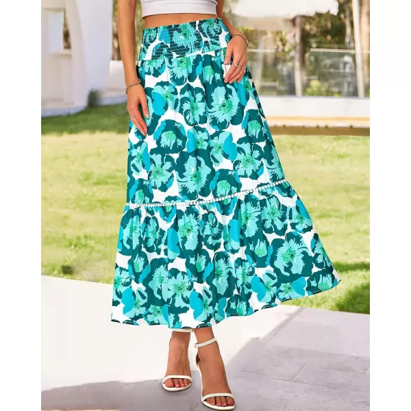 BTFBM Women 2023 Summer Fall Floral Long Skirts Casual Elastic High Waist Pleated Swing A Line Boho Beach Maxi Skirt(Flower Green)