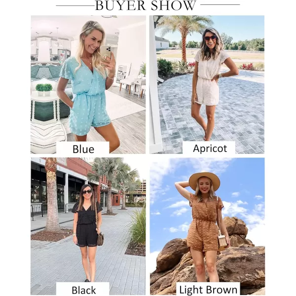 BTFBM Women 2023 Summer Fashion V Neck Wrap Rompers Swiss Dot Pocketed Elastic Waist Short Sleeve Beach Shorts Jumpsuit(White)
