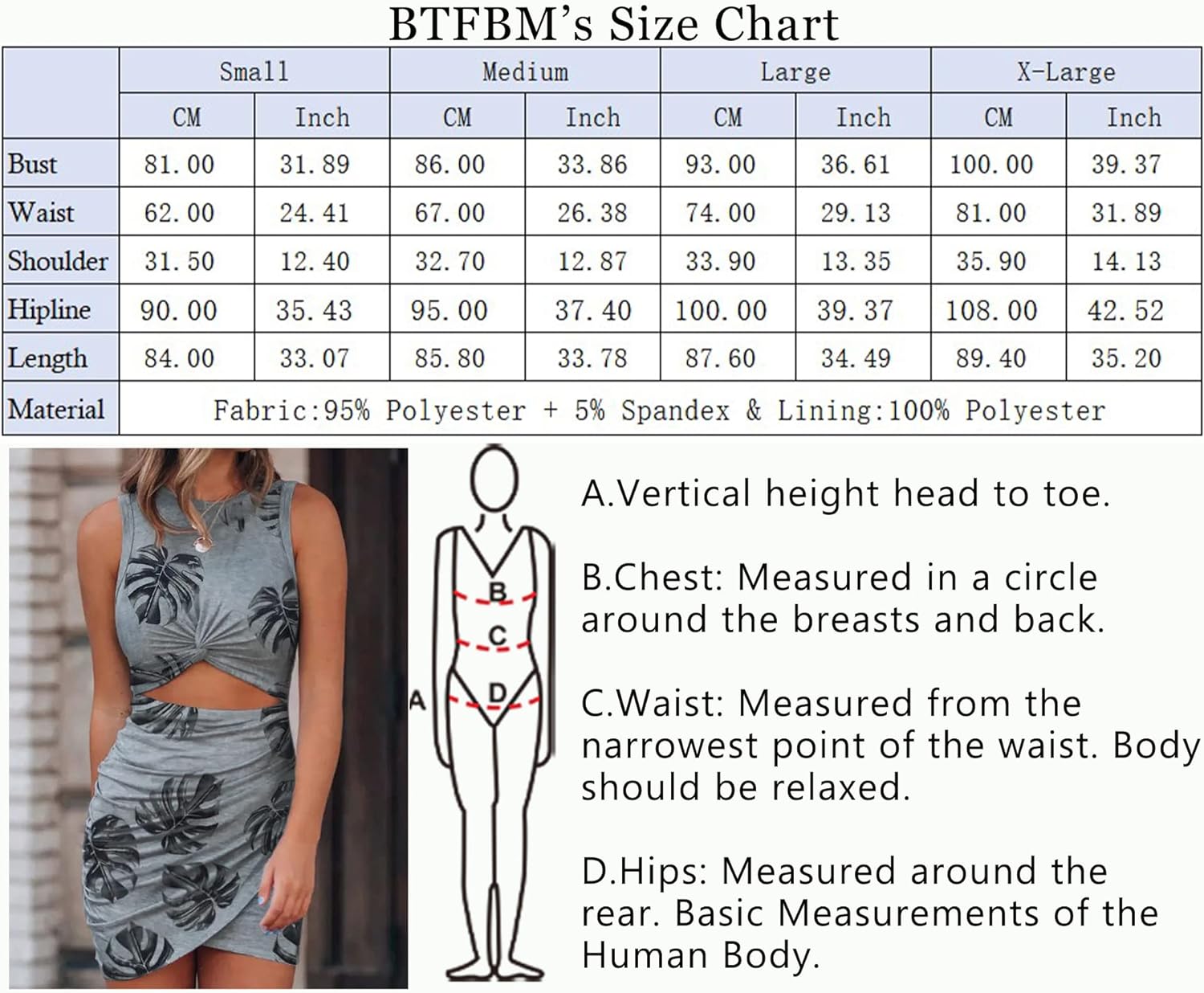 BTFBM Women 2023 Summer Sleeveless Casual Crewneck Bodycon Tank Dress Cutout Twist Slim Wrap Club Party Evening Dresses(Leaf Print Grey)