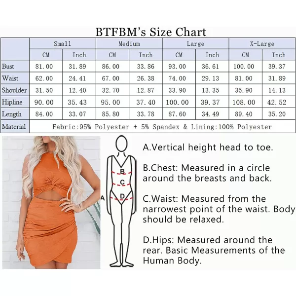 BTFBM Women 2023 Summer Sleeveless Casual Crewneck Bodycon Tank Dress Cutout Twist Slim Wrap Club Party Evening Dresses(Orange)