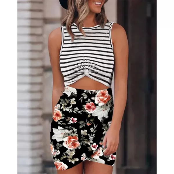 BTFBM Women 2023 Summer Sleeveless Casual Crewneck Bodycon Tank Dress Cutout Twist Slim Wrap Club Party Evening Dresses(Stripe and Floral Black)