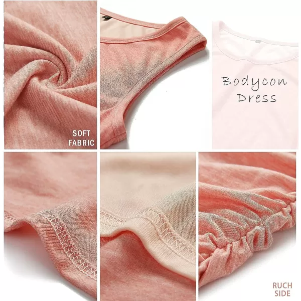 imageBTFBM Women 2023 Summer Sleeveless Tank Dresses Crew Neck Slim Fit Short Casual Ruched Bodycon Party Club Mini DressPurple Red