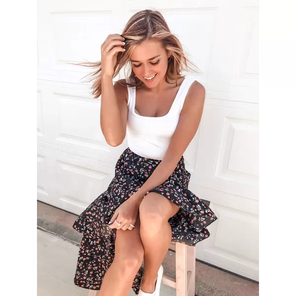 BTFBM Women 2023 Summer Spring Boho Long Skirts Dress Floral Print Elastic Waist Split Ruffle High Low Beach Maxi Skirt(Print Floral Black)