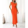 imageBTFBM Women 2025 Summer One Shoulder Bodycon Ruched Maxi Dresses Slit Mesh Long Formal Cocktail Wedding Guest DressOrange