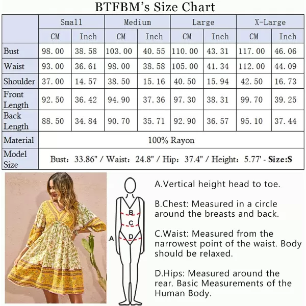 imageBTFBM Women Casual Spring Summer Dresses V Neck 34 Long Sleeve Ruffle Floral Flowy Boho Babydoll Mini Short Beach DressFloral Yellow White
