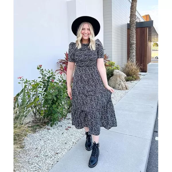 BTFBM Women Casual Summer Dresses 2023 Spring Crew Neck Ruffle Short Sleeve Floral Leopard Smocked Boho Flowy Maxi Dress(Floral Black White)
