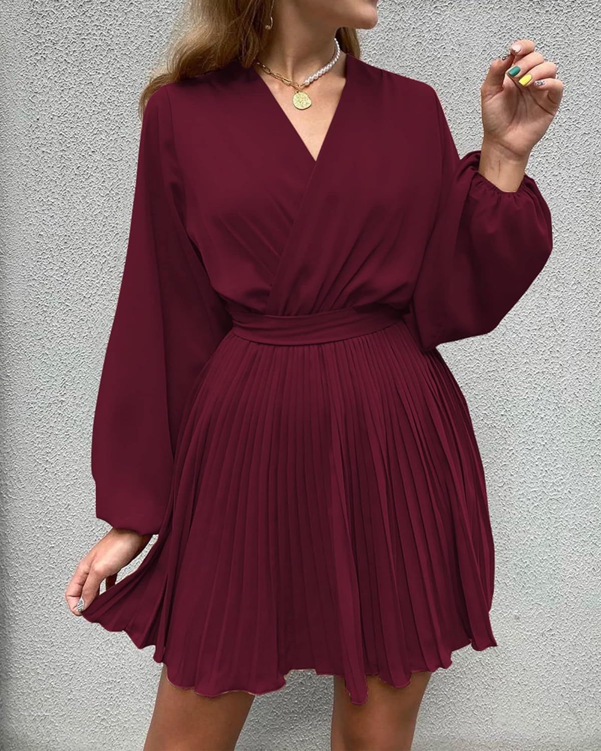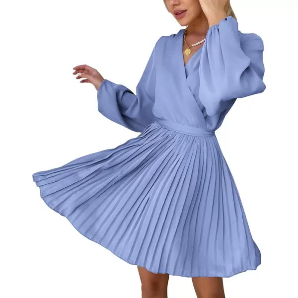 FEATURES: S=US 4-6, M=US 8-10, L=US 12-14, XL=US 16-18, XXL=US 20-22 / Cocktail Dresses / Summer Dresses For Women 2023 / Casual Dresses For Women / Wrap V Neck With Safety Snap / Puff Long Sleeve / Elastic High Waist / Self-Tie Belt / Pleated Skirt Part / Solid Color / Flowy A-Line Shape / Only Light Color Dress With Lining /Beach Dresses For Women / Mini Dress