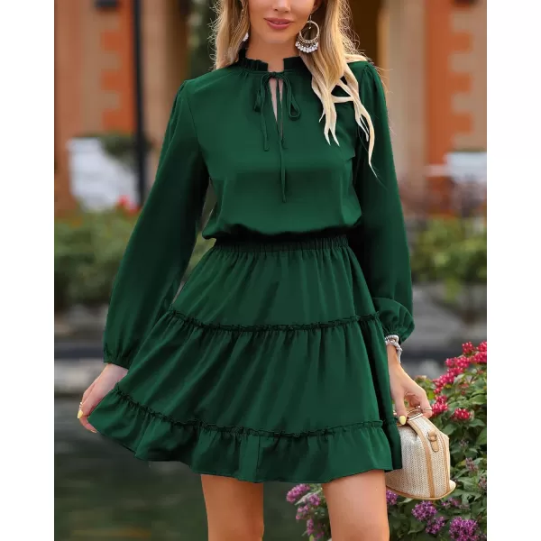 BTFBM Women Casual Summer Fall Dresses Tie V Neck Long Sleeve High Waist Ruffle Tiered A Line Swing Tunic Mini Dress(Long Sleeve Dark Green)