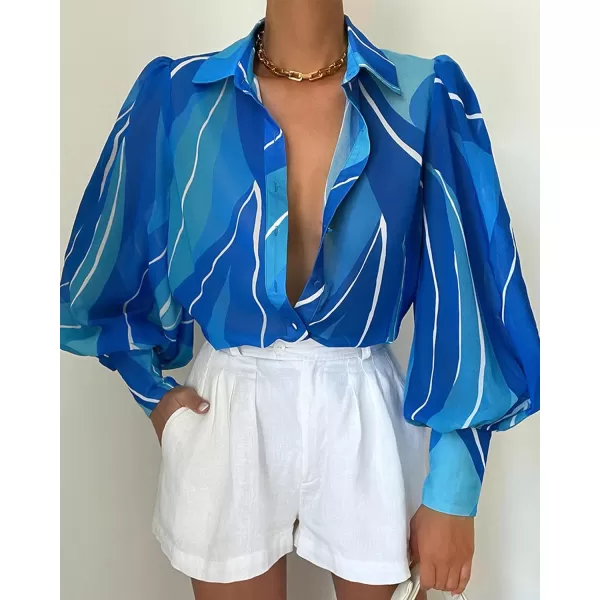 Save up to 40% on BTFBM Women Fashion Button Down Shirts Lapel V Neck Printed Boho Long Sleeve Blouses Dressy Casual Summer Spring Tops(Multi Blue) styles during our end-of-season sale.