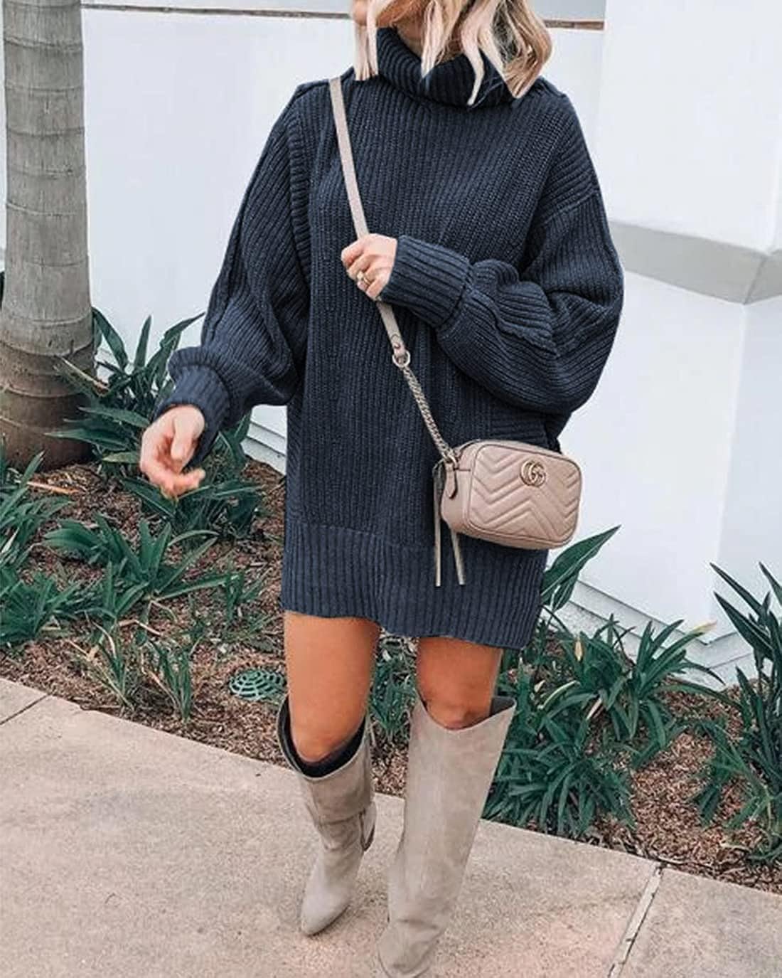 imageBTFBM Women Fashion Sweater Short Dress Long Sleeve Turtleneck Oversized Fall Winter Soft Chunky Knit Pullover SweatersSolid Navy