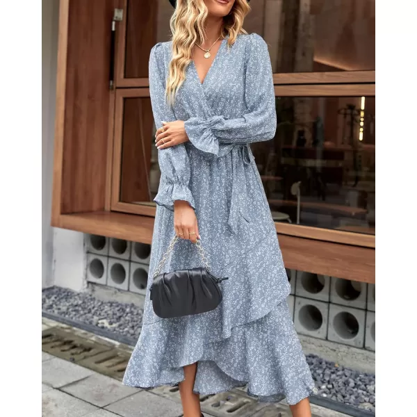imageBTFBM Women Long Sleeve Wrap Maxi Dress V Neck Boho Floral High Waist Flowy Ruffle 2023 Summer Fall Dresses with BeltFloral Blue