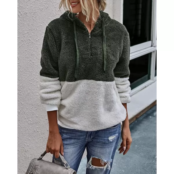 BTFBM Women Sherpa Pullover Quarter Zip Long Sleeve Fluffy Soft Fleece Jackets Sweaters Sweatshirts Hoodies Outwear Coat(Q_army Green)
