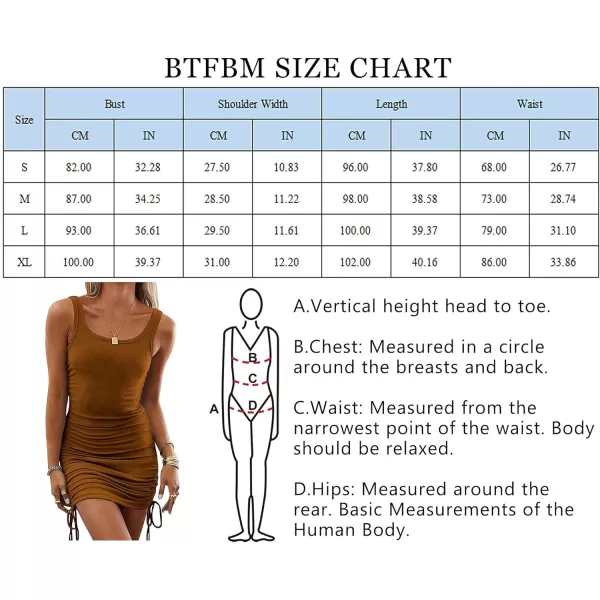 imageBTFBM Women Sleeveless Bodycon Ruched Short Dress Side Drawstring Solid Crew Neck Casual Summer Tank Shirt Mini DressesNarrow Strap  Coffee