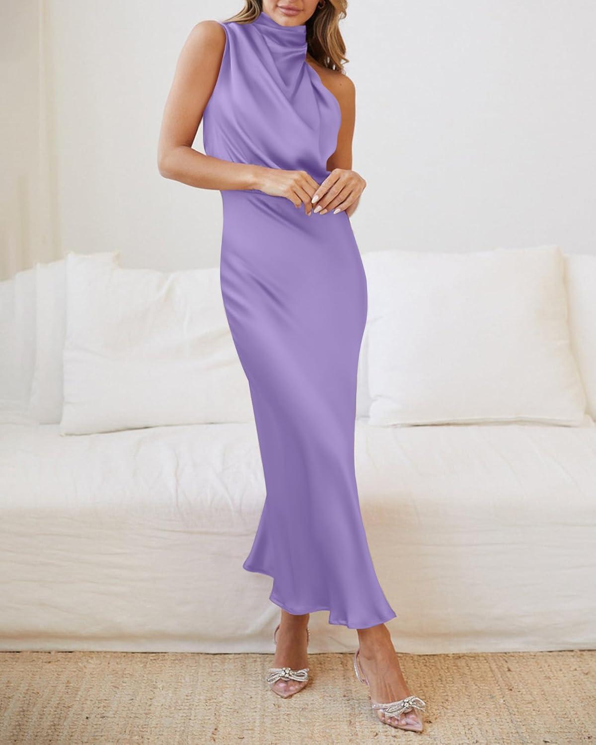 BTFBM Women Sleeveless Cocktail Dresses Fall Mock Neck Keyhole Elastic High Waist Evening Party Maxi Wedding Guest Dress(Purple)