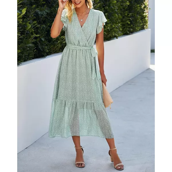 imageBTFBM Women Summer Bohemian Floral Casual Wrap V Neck Ruffle Cap Sleeveless Belt ALine Pleated Hem Swing Midi Sun DressLight Green