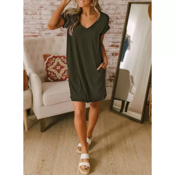 BTFBM Women V-Neck Short Sleeve Summer Dresses 2023 Spring Casual Loose T-Shirt Tunic Short Dress Pajamas with Pockets(Army Green)