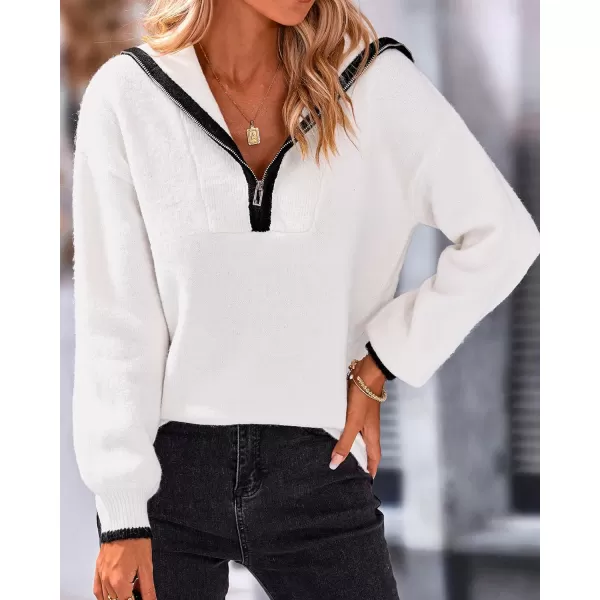 BTFBM Women’s 2023 Fall Winter Half Zip Pullover Sweaters Casual V Neck Long Sleeve Ribbed Knit Loose Jumper Tops(Solid White)