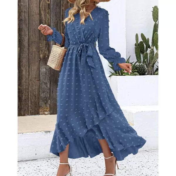 BTFBM Women’s Boho Cocktail Maxi Dress 2023 Fall Fashion V Neck Swiss Dot Long Sleeve Flowy Slit Wedding Party Dresses(Swiss Dot Blue)