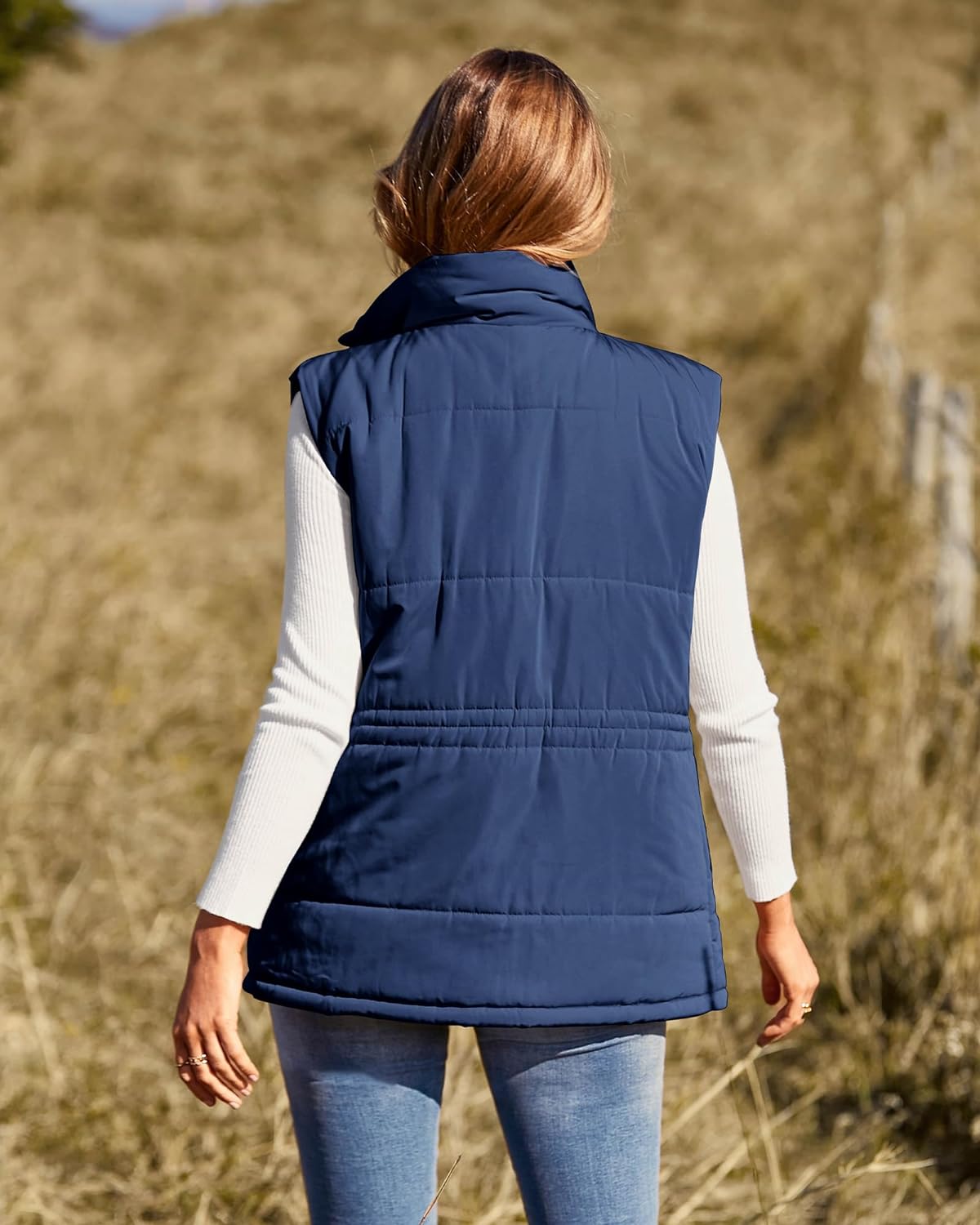 BTFBM Women's Casual Outerwear Vest Button Down Zip Up Padded Gilet Drawstring Sleeveless Jackets Coats with Pockets(Solid Navy)