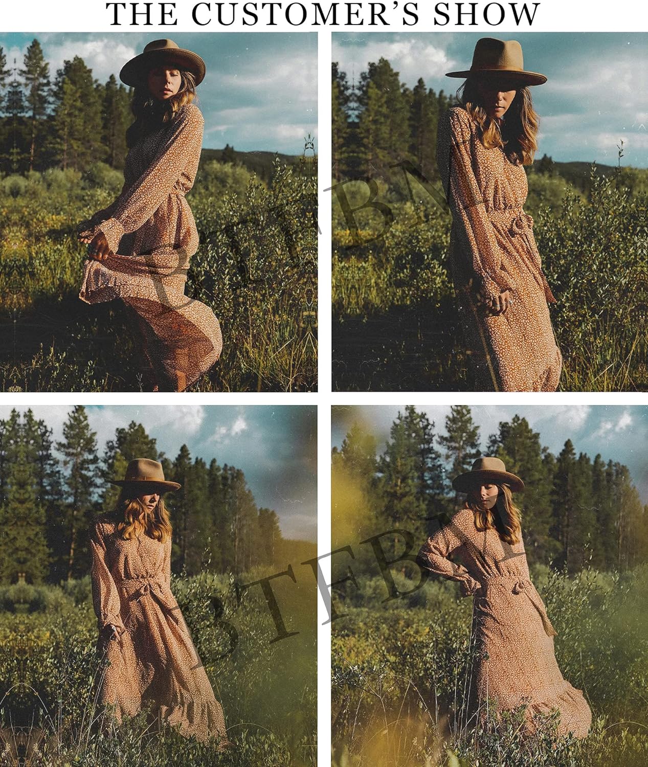 FASHIONABLE DESIGN : Womens Dresses / Casual Dresses For Women / Long Sleeve Dresses / Boho Dress / Charming Deep V Neck / V Line End With A Safety Button / Long Sleeve With Cute Ruffle Cuffs Design / Flowy Swing Pleated Skirt Hem / Delicate Floral Printed / Fit And Flare A- Line Dress / Below The Knee And Above Ankle Length / Comfort Midi Length / Soft And Airy Fabric / Tie Waist / Elastic Band At The Waist / Romantic, Playful, Bohemian Style / For Spring, Summer, Fall / Size: S, M, L, XL