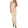 Get your hands on our newest BTFBM Womens Knit Bodycon Midi Dress Casual Sleeveless See Through Cover Up Dresses Crew Neck Slit Tank Summer Dresses(Light Khaki) and enjoy a limited-time discount offer.