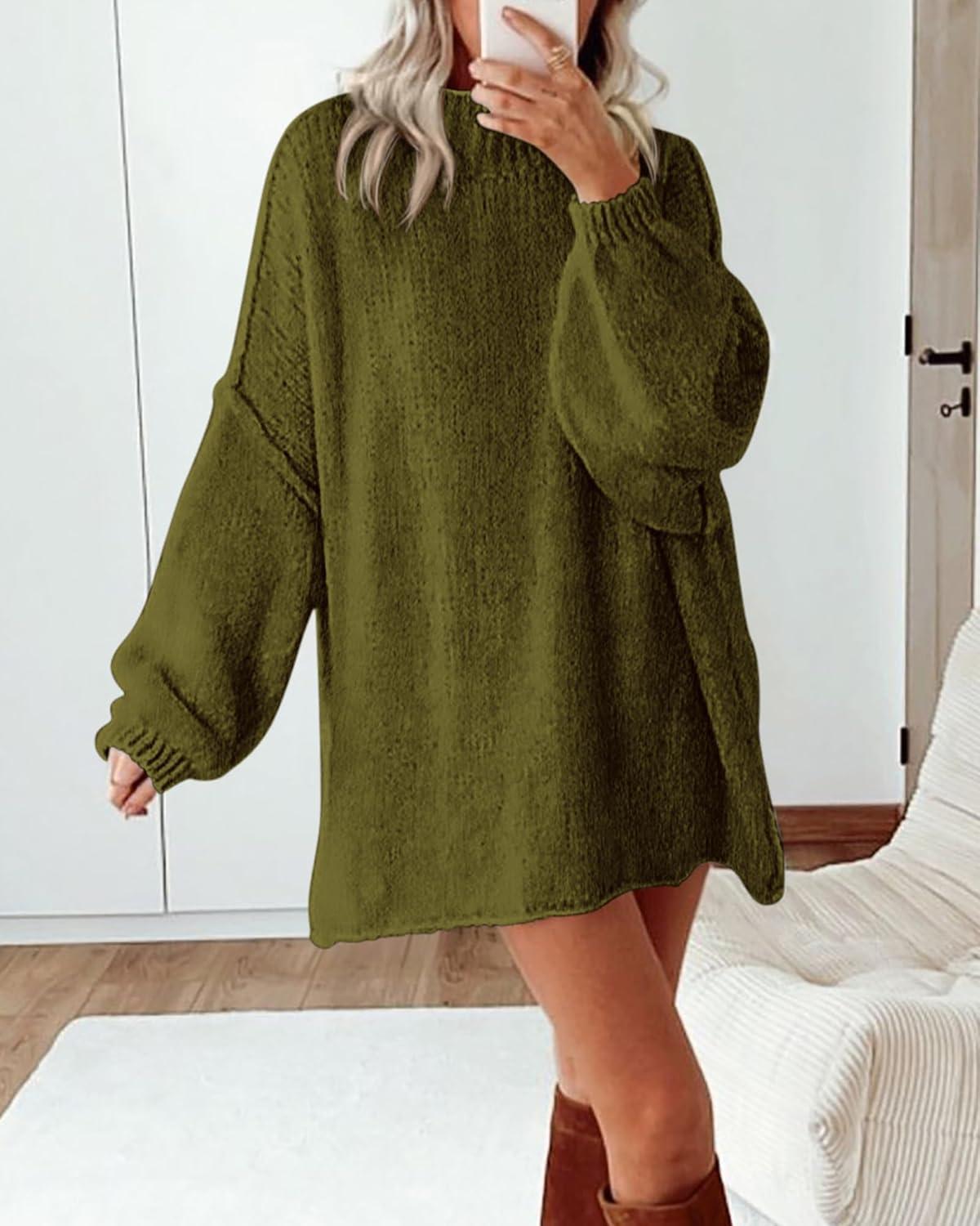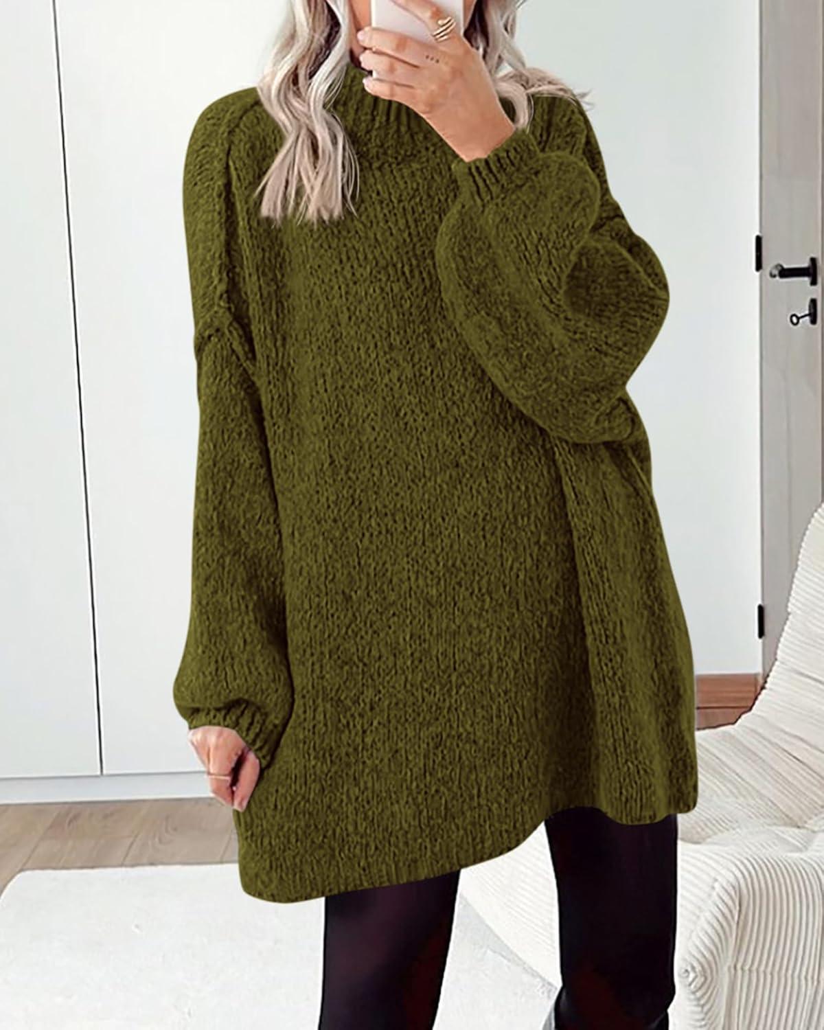 BTFBM Women's Long Pullover Sweaters 2025 Fall Winter Mock Neck Long Sleeve Thick Oversized Casual Knitted Jumper Tops(Army Green)