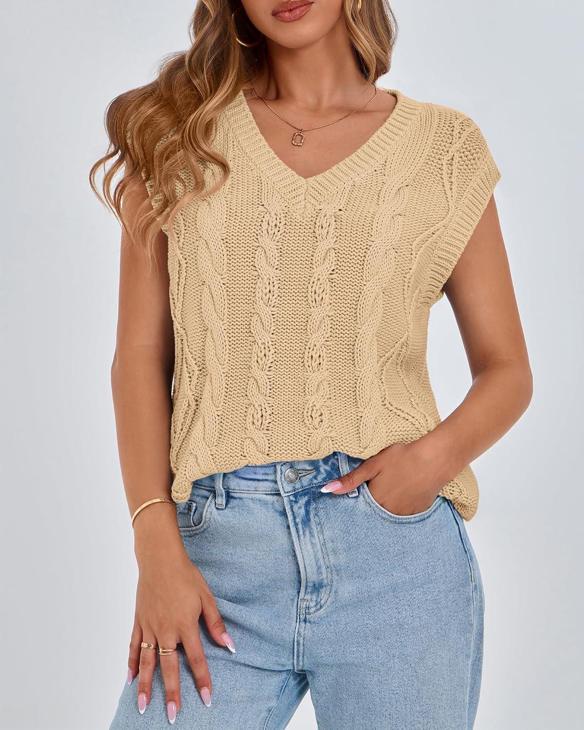 Save up to 40% on BTFBM Womens Oversized Sweater Vest 2025 Summer V Neck Casual Sleeveless Sweaters Loose Cable Knit Pullover Tops(Light Khaki) styles during our end-of-season sale.